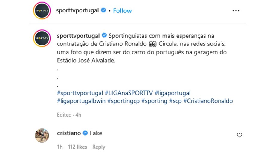 من جانبه نفي كريستيانو رونالدو وجوده في لشبونة وقال أن هذه الصورة مزيفة.