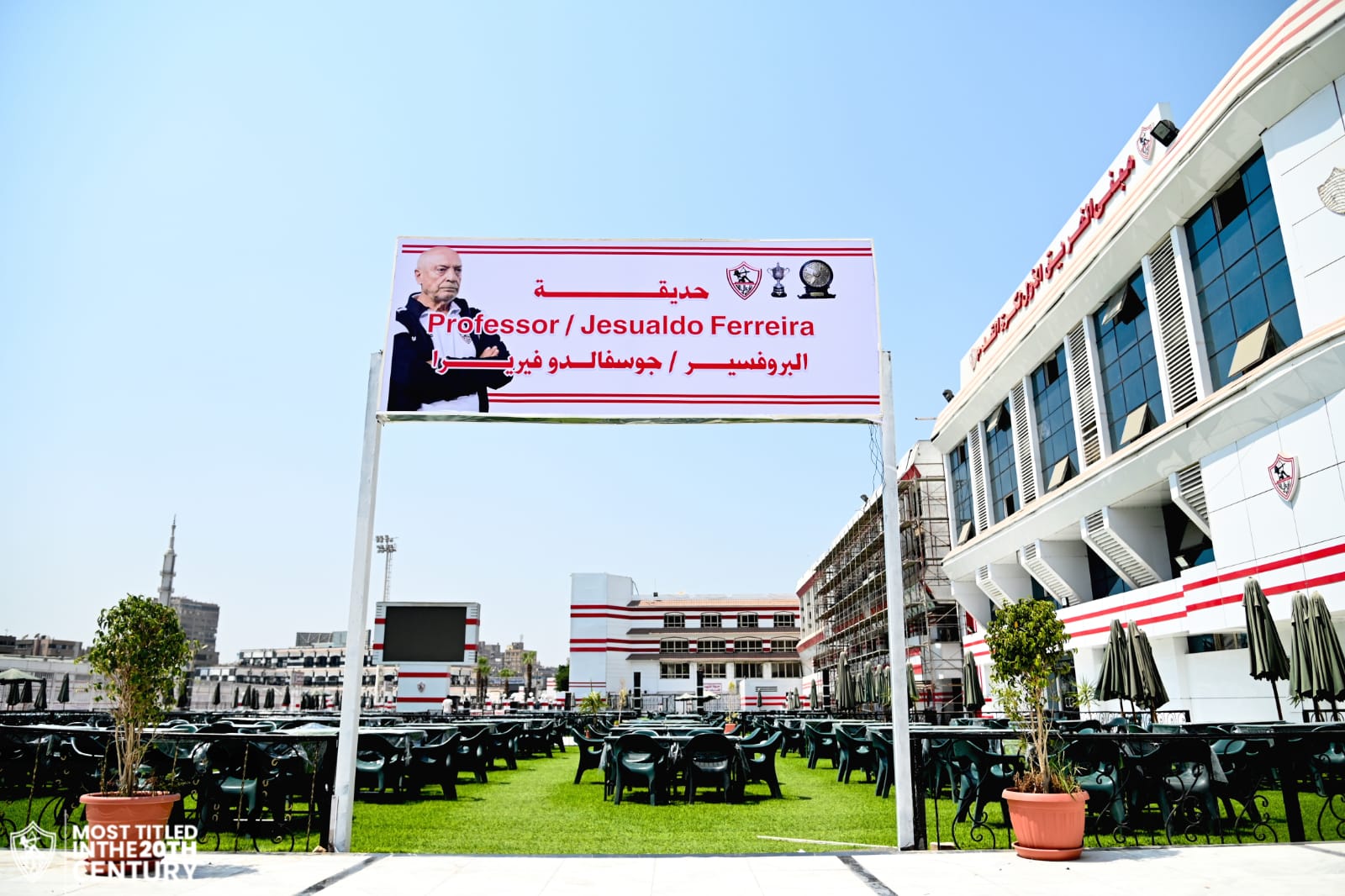أصدر المستشار مرتضي منصور رئيس نادي الزمالك تعليماته بوضع لافتة تحمل اسم جوسفالدو فيريرا المدير الفني للفريق الأول لكرة القدم بالقلعة البيضاء على الحديقة المواجهة لملعب عبد اللطيف أبو رجيلة كنوع من التكريم للمدرب البرتغالي.
