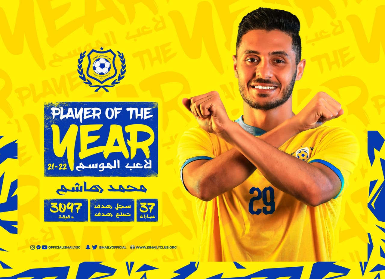 حصد محمد هاشم مدافع الفريق الأول لكرة القدم بالنادي الإسماعيلي، جائزة لاعب الموسم الحالى بعد تألقه بشكل لافت للنظر خلال المسابقات المحلية.