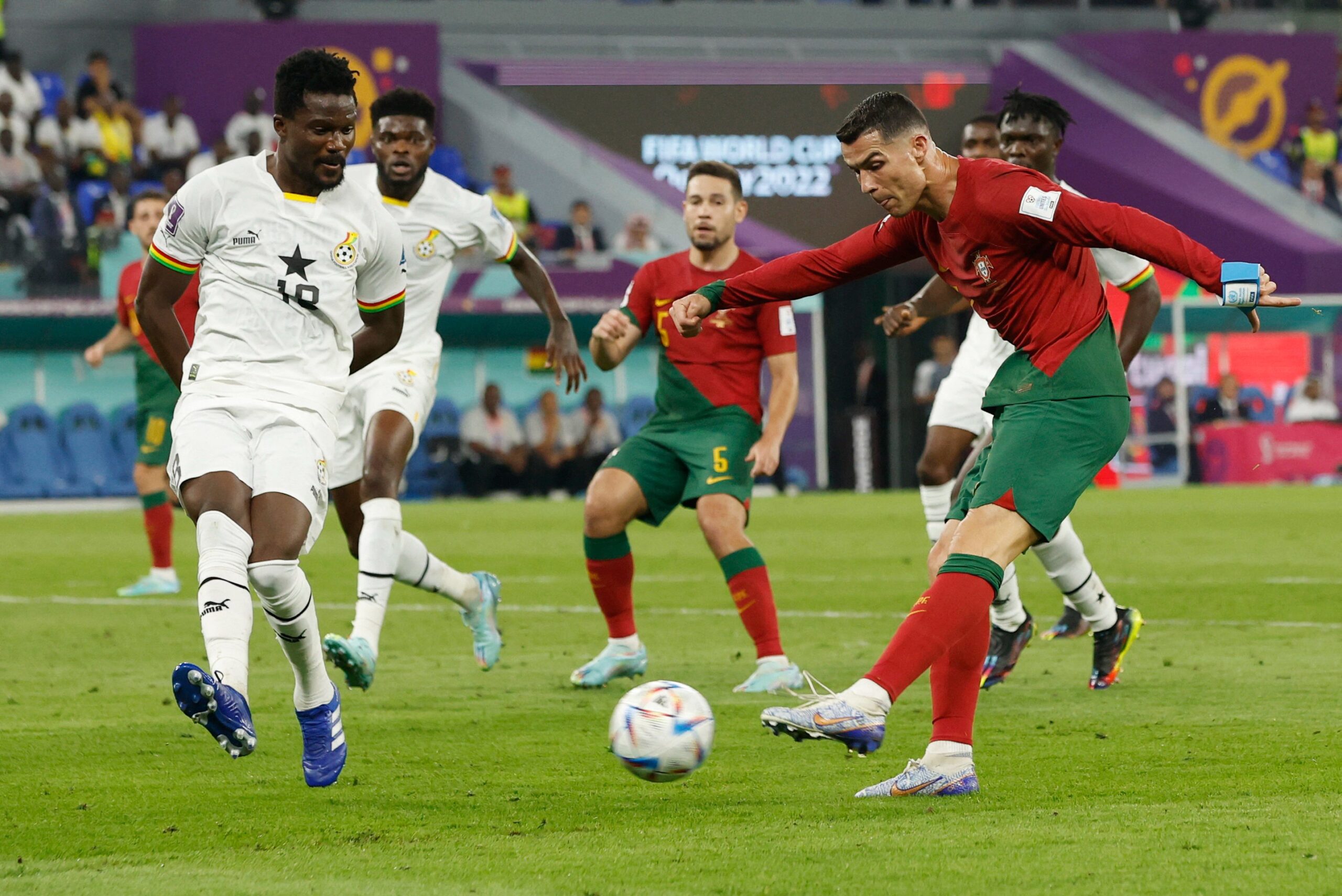 وسجل رونالدو هدف منتخب البرتغال أمام غانا من ضربة جزاء في الدقيقة 65 خلال المباراة المقامة مساء اليوم الخميس، على ملعب ستاد رأس أبو عبود، ضمن منافسات الجولة الأولى من دور المجموعات ببطولة كأس العالم فيفا قطر 2022.