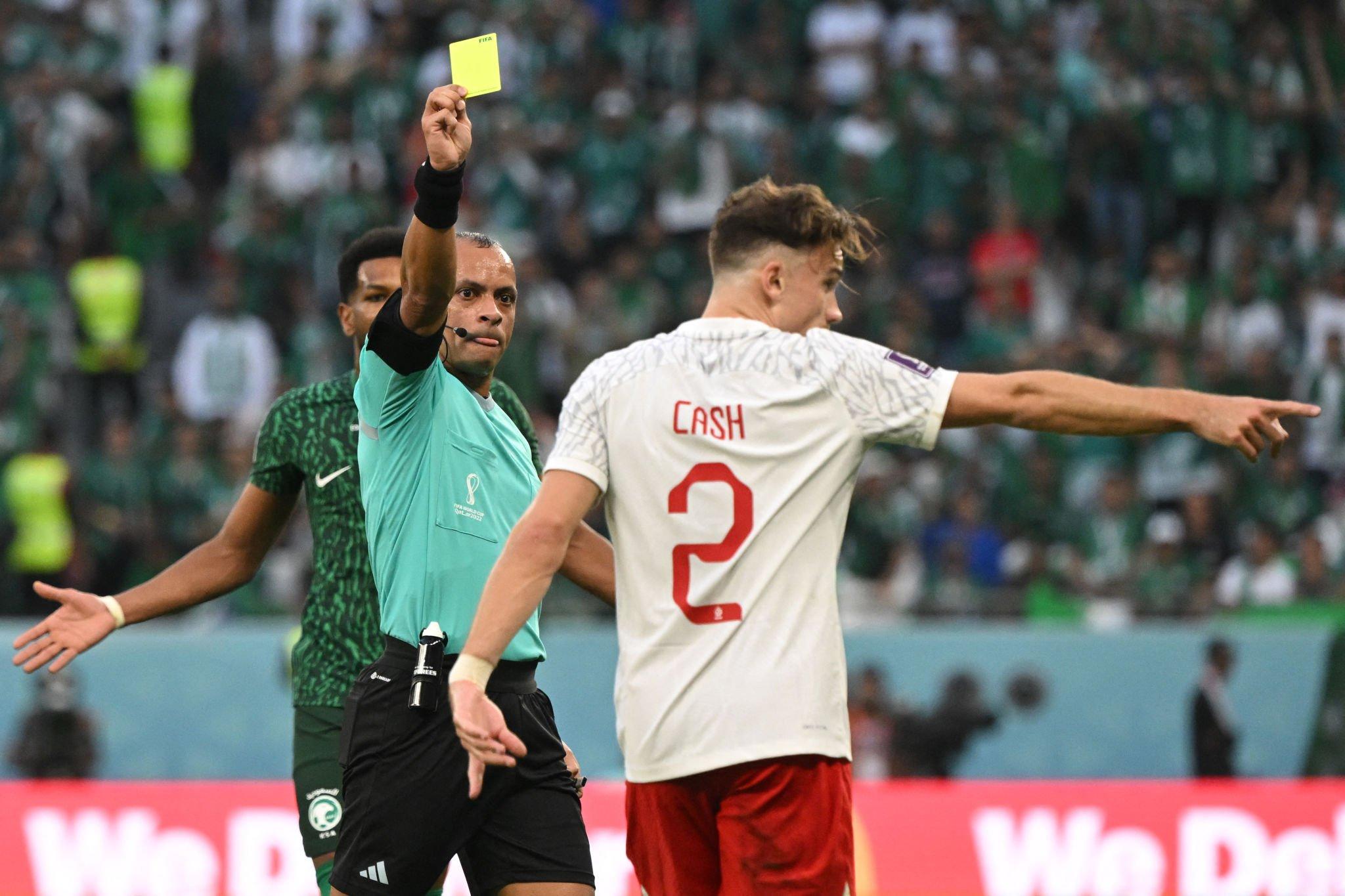 ورفض حكم اللقاء إشهار البطاقة الصفراء الثانية للاعب منتخب بولندا ماتي كاش، وذلك بعد تدخله على محمد البريك لاعب المنتخب السعودي في الدقيقة 20 من عمر المباراة.