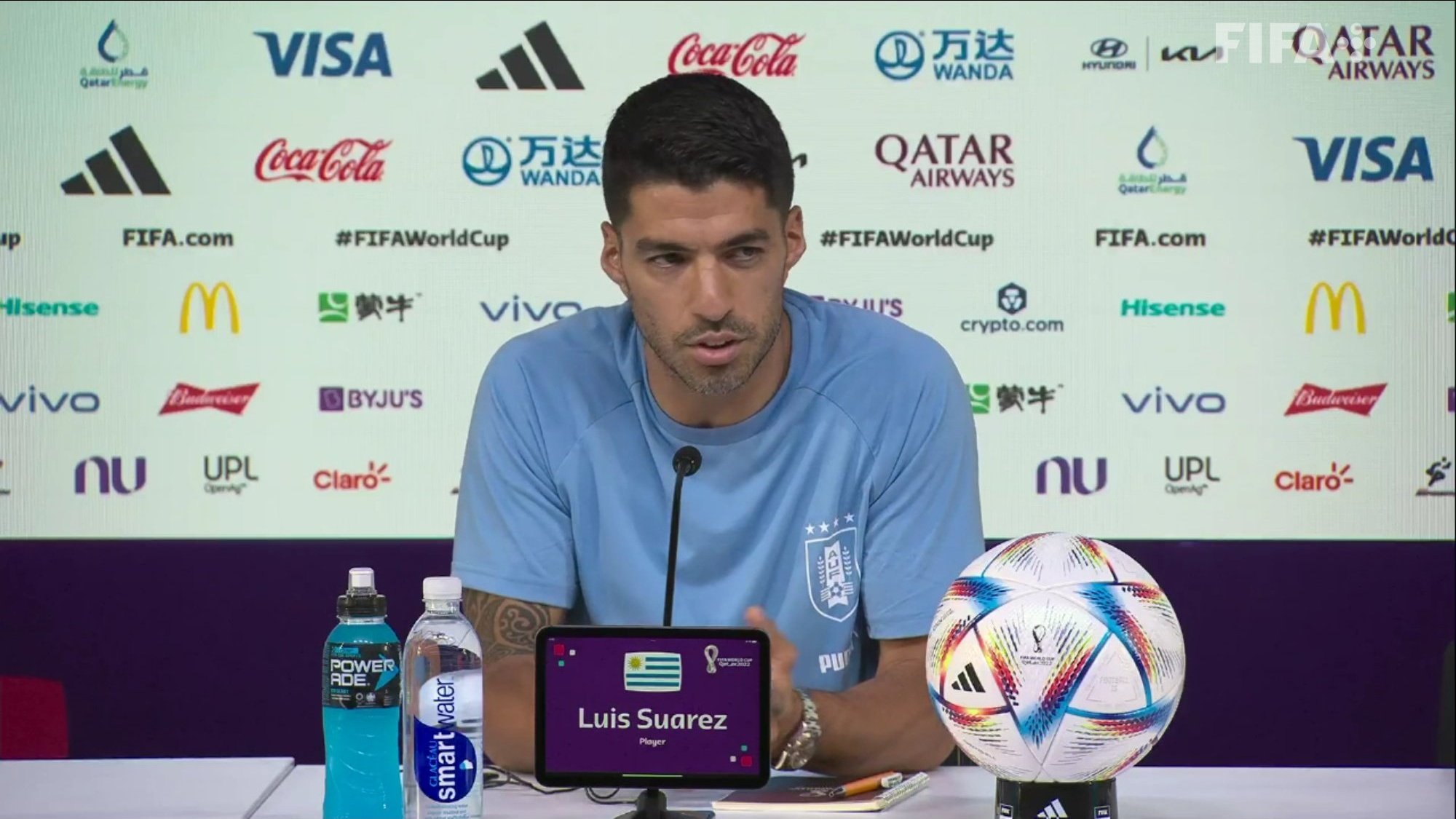 وكان سواريز تصدى للكرة بيده في آخر دقائق الوقت الإضافي من مباراة الأوروجواي ضد غانا، ليتحصل على بطاقة حمراء، ولكن هذه اللقطة المثيرة للجدل منحت منتخب بلاده بطاقة العبور إلى الدور نصف النهائي.