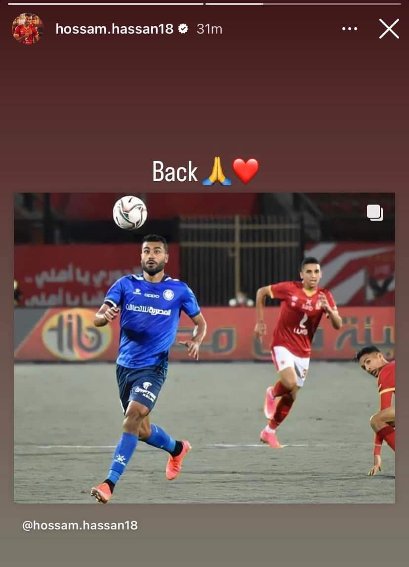 ونشر حسام حسن صورة له عبر ستوري إنستجرام بقميص سموحة، معلقا “عدت”.