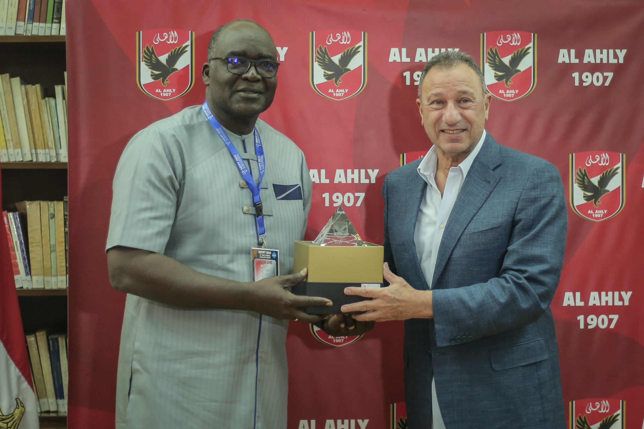 وقام وفد الاتحاد الإفريقي لكرة اليد بجولة في مقر النادي بالجزيرة، تفقد خلالها منطقة دولاب البطولات وملعب مختار التتش، وكذلك صالة الأمير عبدالله الفيصل، وصالة الشهداء وصالة الكاراتيه، وشاهدوا تدريبات عدد من فرق أكاديميات الألعاب الجماعية بالنادي، وفي ختام الزيارة قام الكابتن الخطيب بإهداء أعضاء الوفد درع وعلم وقميص النادي الأهلي.